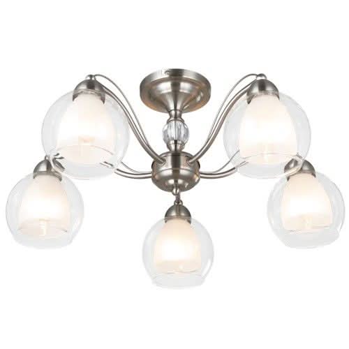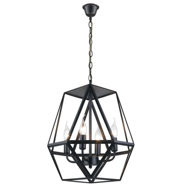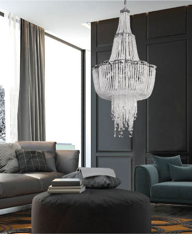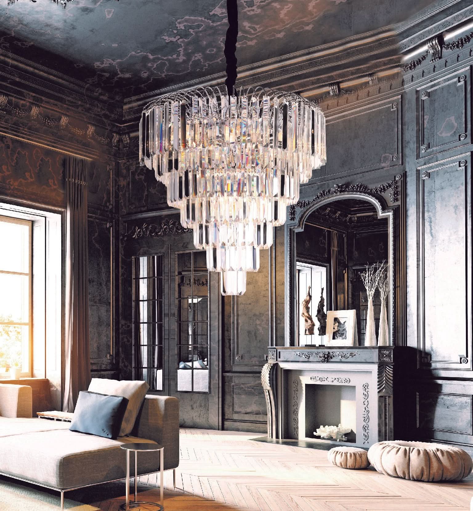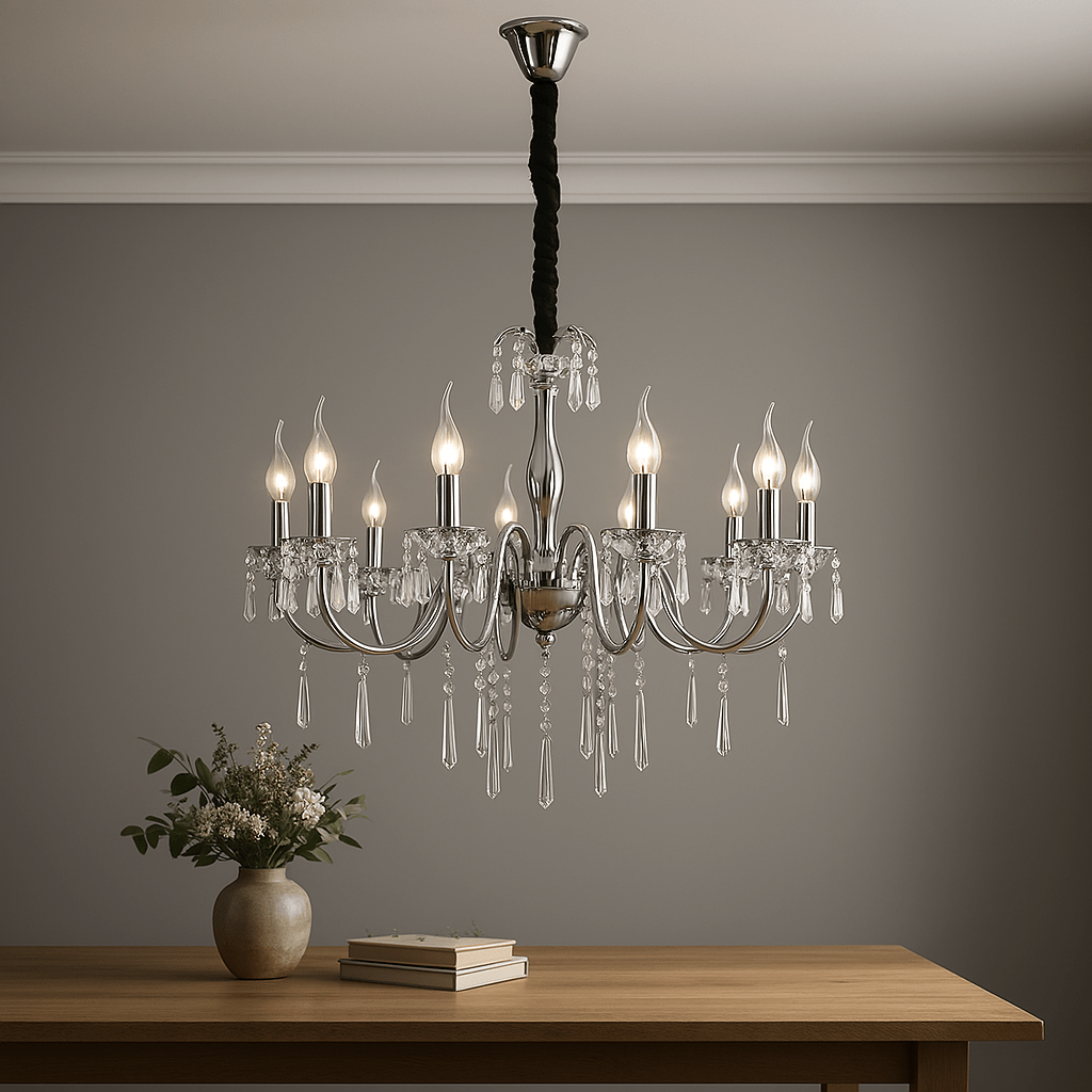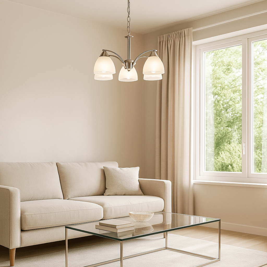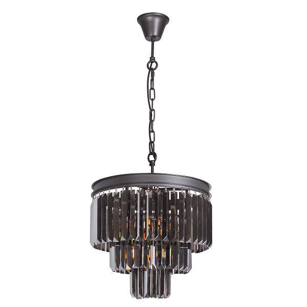 Polished Chrome and Black Chandelier Frosted Glass Modern Design