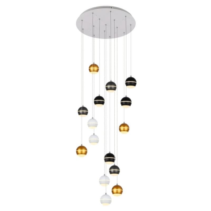 Dalia Black and Gold Chandelier - 8 Light - White Glass