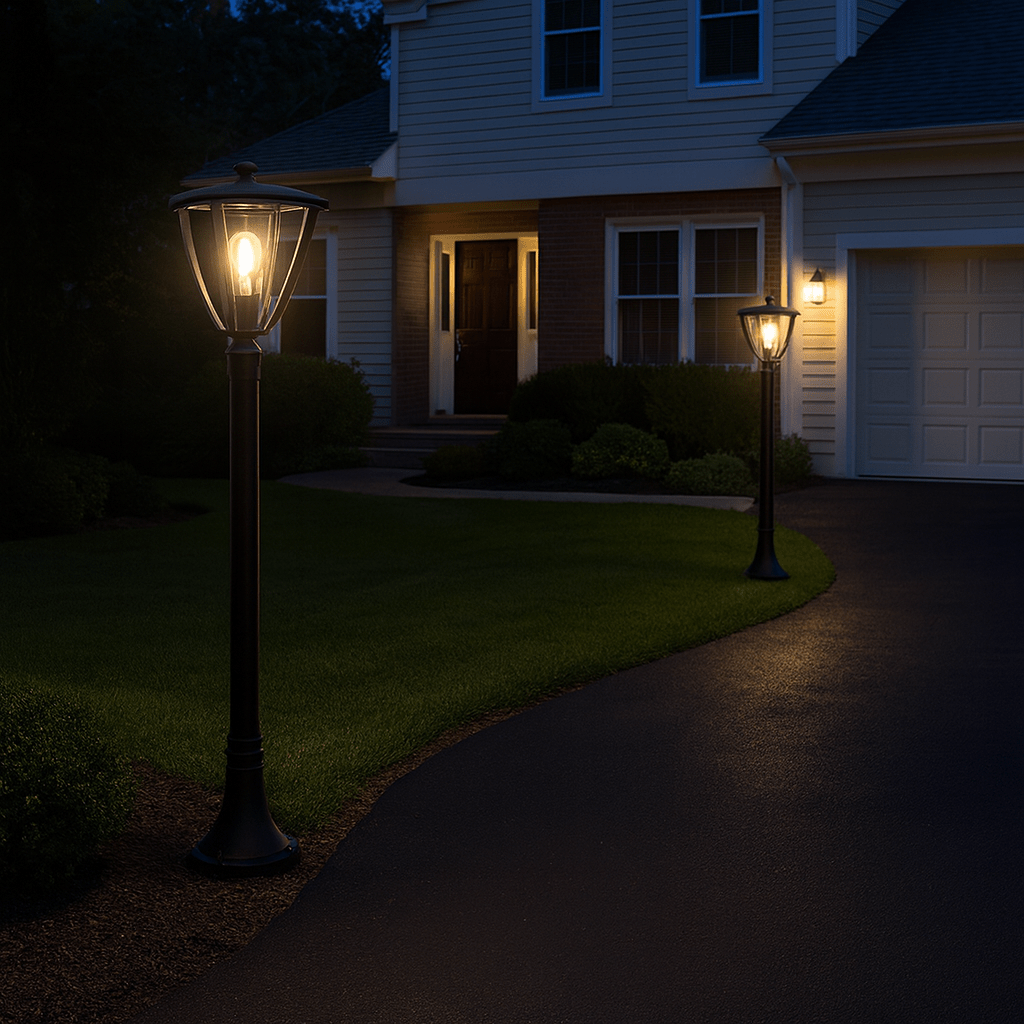 Place on each side of driveway entrance to deter intruders and assist parking under low-light conditions.