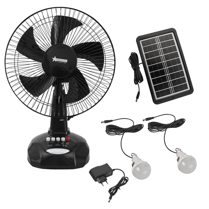 12-inch Inch Solar and Mains Rechargeable Desk Fan with Lights – Eco-Friendly Cooling Solution