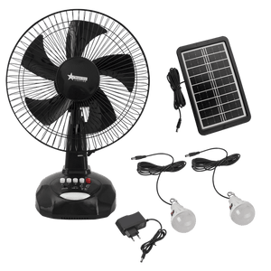 12-inch Inch Solar and Mains Rechargeable Desk Fan with Lights