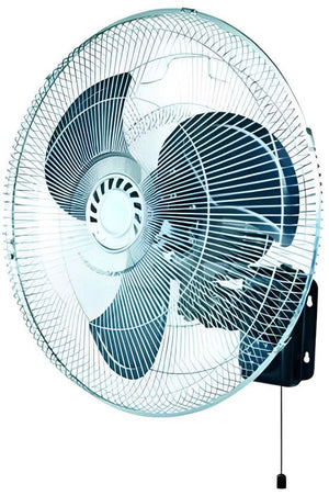 The 18" Wall Mount Industrial Fan is designed to keep larger spaces cool and well-ventilated. With its robust build and convenient pull switch, this fan is perfect for industrial settings, workshops, or large home areas where consistent air circulation is crucial.