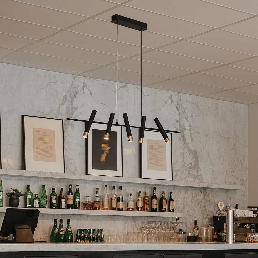 This modern black-and-gold pendant is ideal for adding a standout feature over your dining room table or kitchen island, giving you comfortable warm light for everyday meals and entertaining. It also suits restaurant spaces where you want accent lighting that still provides practical general illumination indoors.