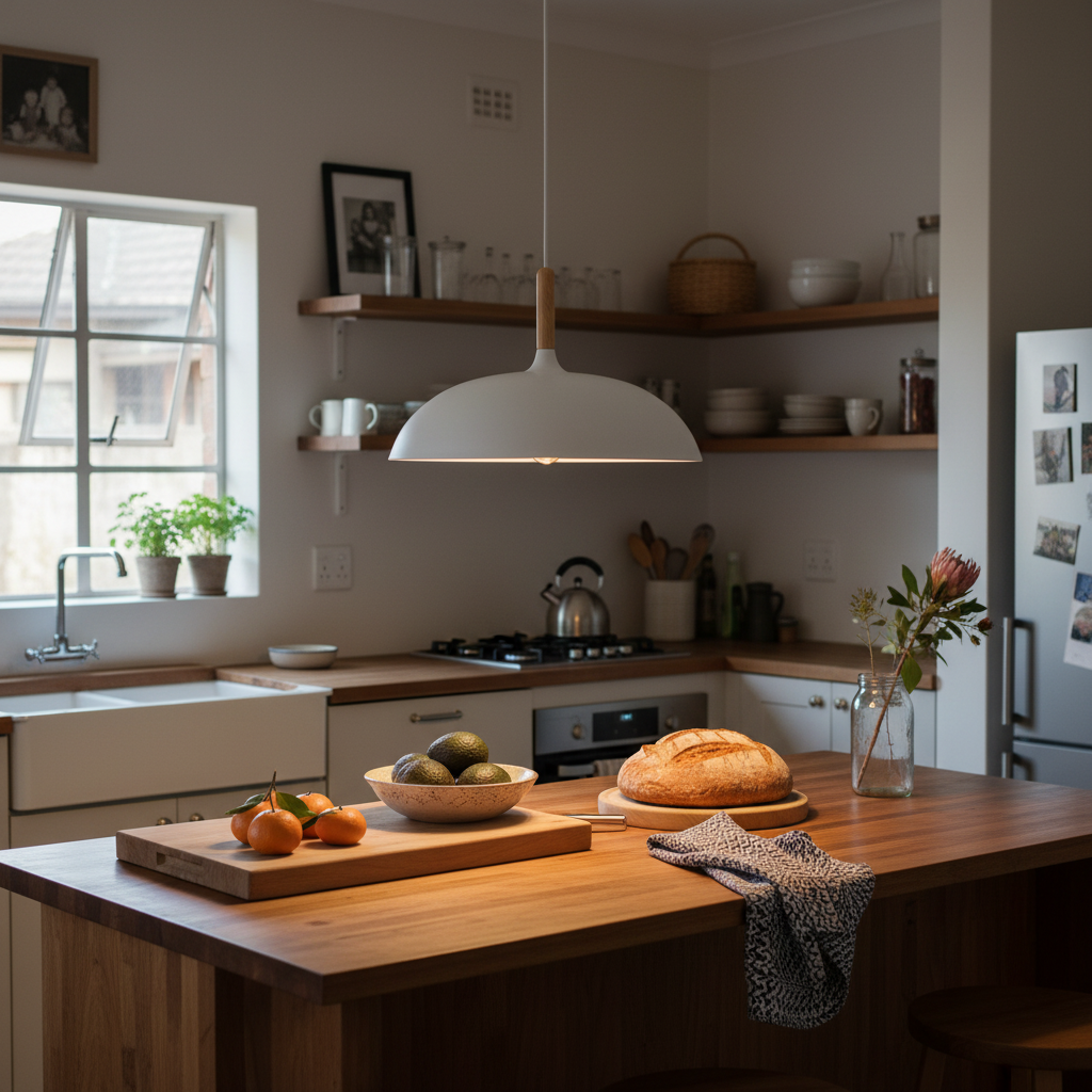 The pendant light is available at South African retailers like K.Light and Light World Online.