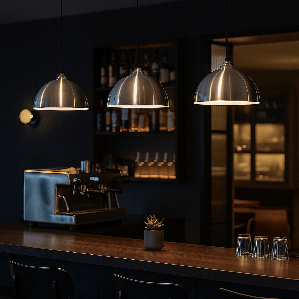Install multiple pendants along counters to enhance your cafe's aesthetic appeal and create warm, welcoming vibes for customers.