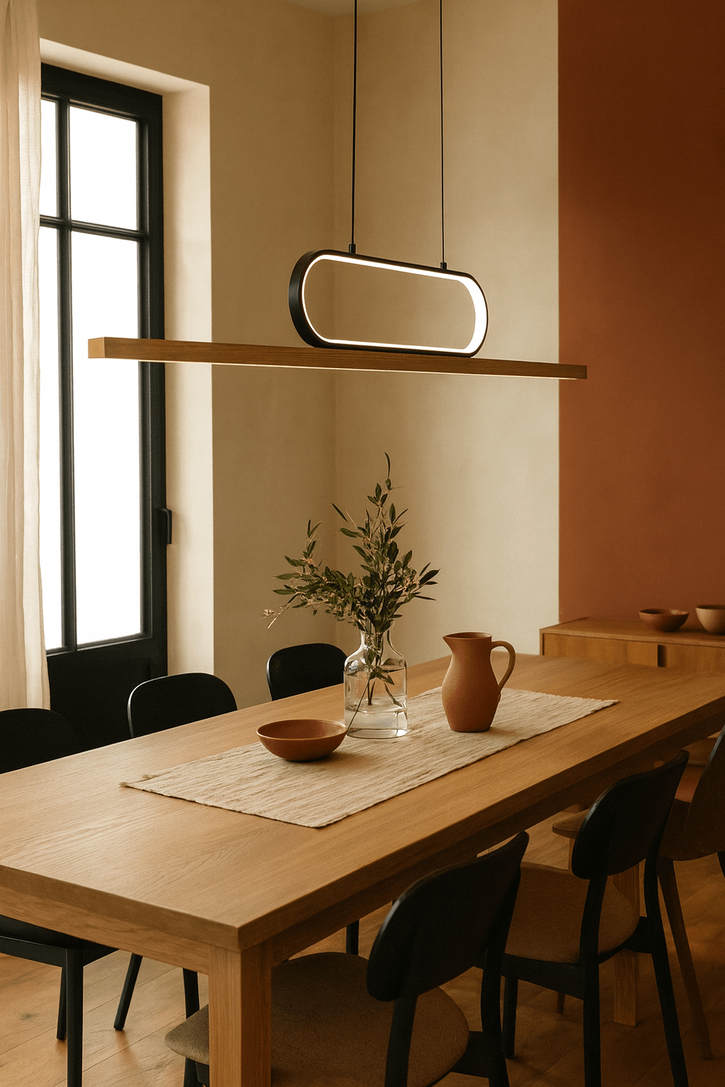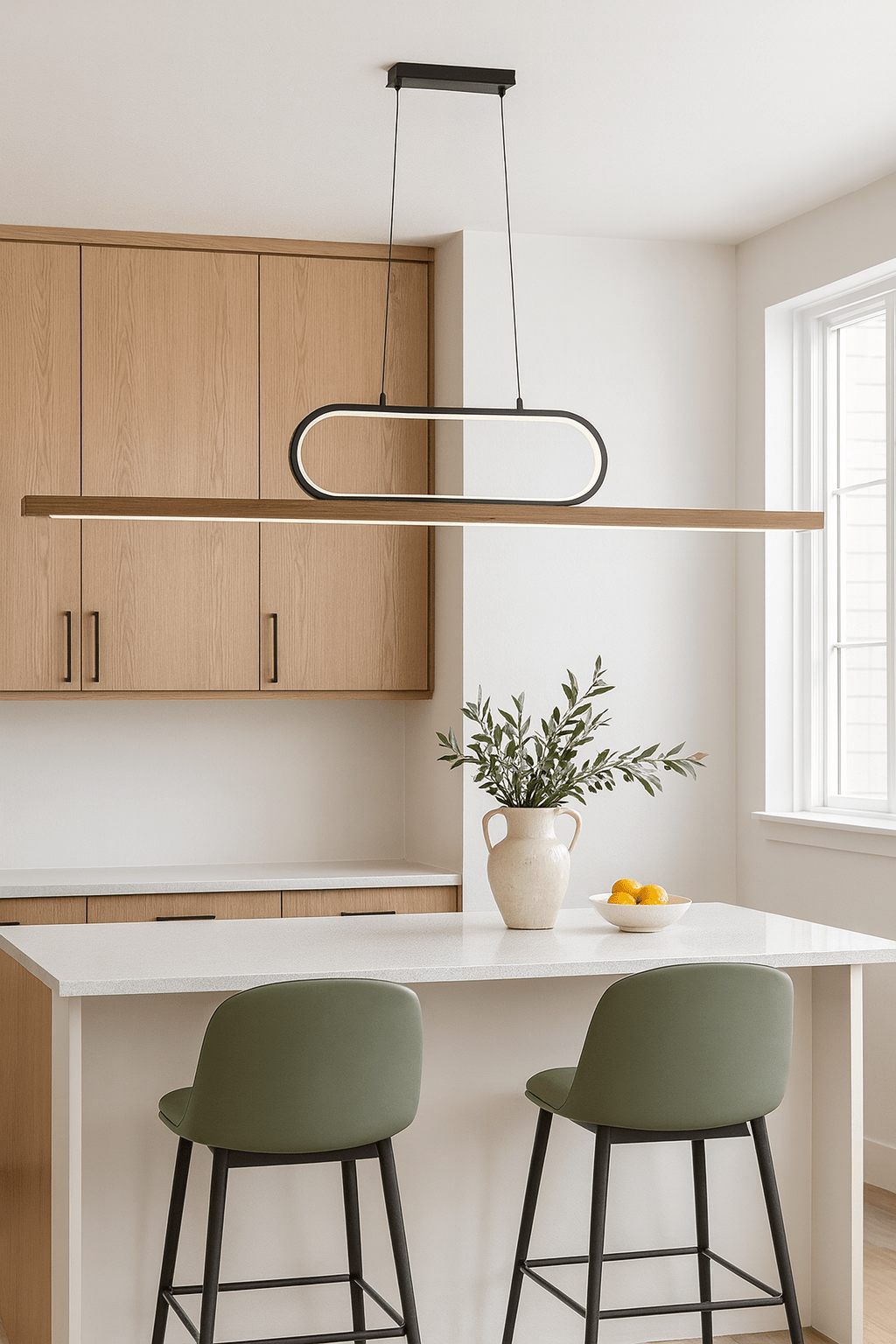 Elevate your interior with the sleek and minimalist 38W LED Woodline Linear Pendant in Black. Designed to bring warmth and modernity to workspaces, dining areas, or contemporary living rooms, this pendant offers uniform lighting and a statement aesthetic in one streamlined profile.