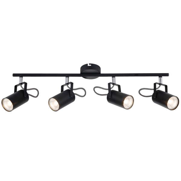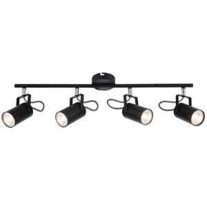 Illuminate your space with the contemporary design of the 4 Light Black Metal and Polished Chrome Spotlight. Its sleek finish and versatile functionality make it an ideal addition to any modern home.