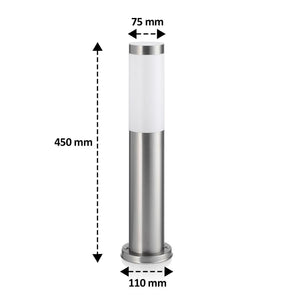The bollard measures 450mm in height with a 125mm diameter, making it compact yet stylish for various applications.