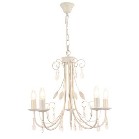 5 Light Fossil White Metal Chandelier with Clear Acrylic Crystals