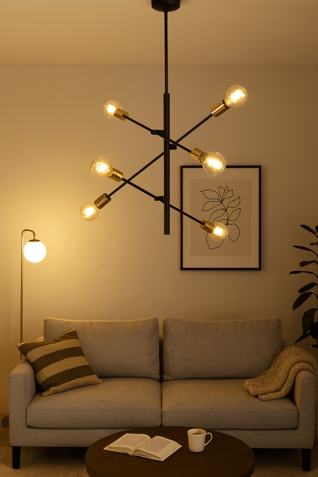 Screw in six compatible E27 LED bulbs, power on, and confirm stable mounting and uniform illumination.