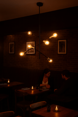 Hang above your dining table to create a warm, elegant focal point and enhance dinner conversations with adjustable light arms.