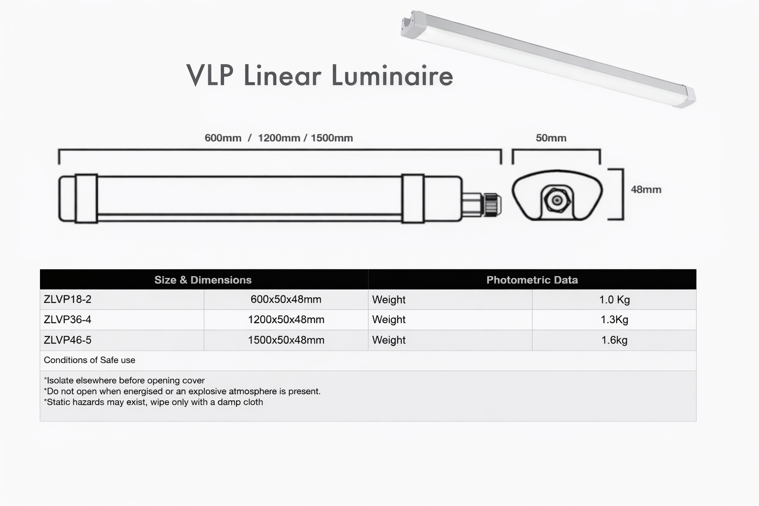 VLP 600mm Explosion-Proof LED Linear Luminaire – 18W | Ex Rated IP65
