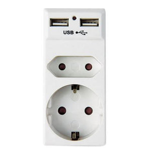 Adaptor - 1 x Schuko, 1 x Euro, 2 x USB
