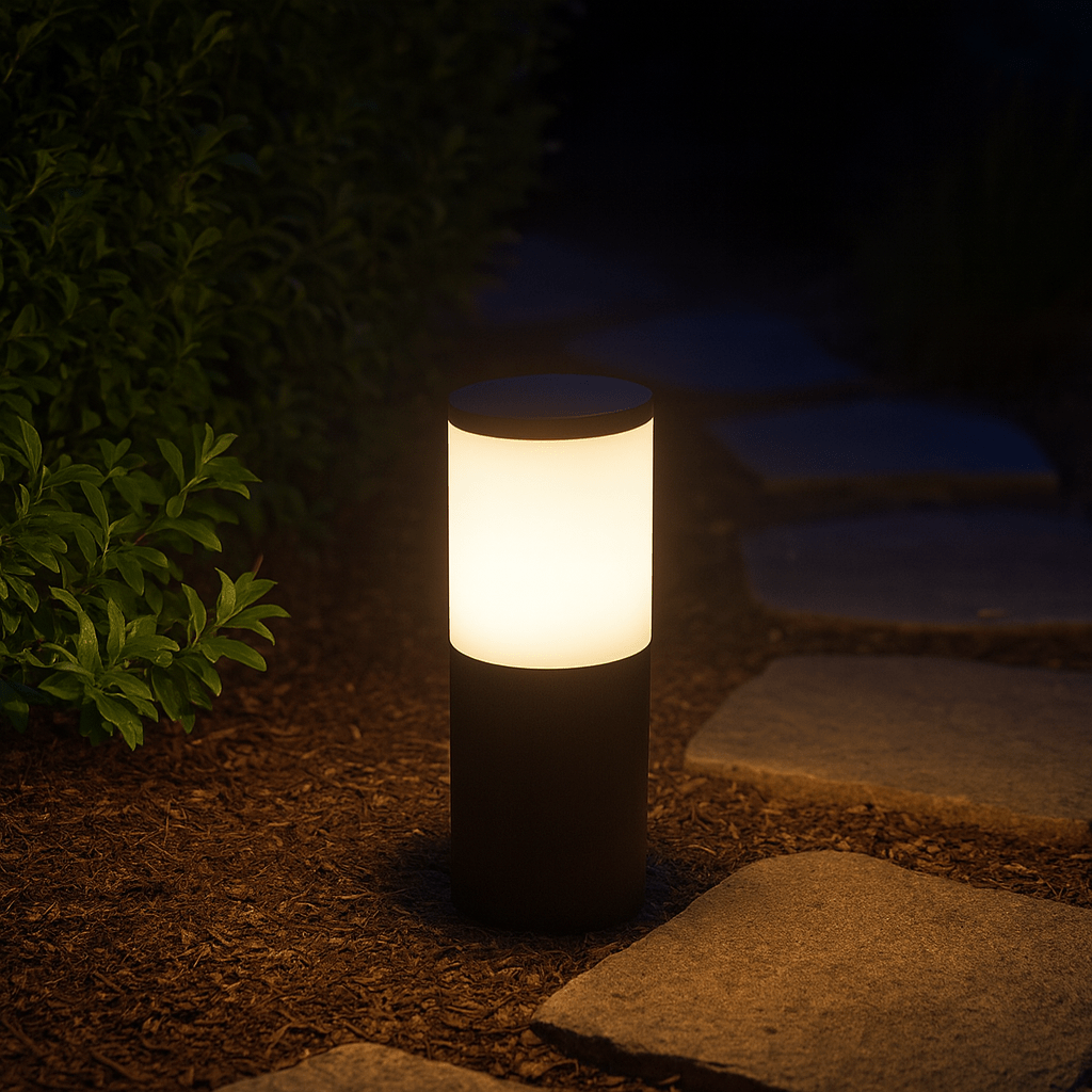 Compact and durable, the Amelia Bollard is crafted from shockproof resin and built to withstand even the toughest coastal environments. Its included E27 LED lamp offers CCT flexibility — switch between warm 2700K, neutral 4000K, or crisp daylight 6500K lighting to suit your outdoor ambiance.