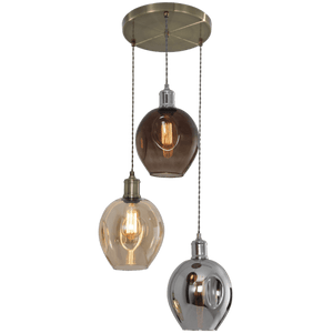 The Antique Brass Pendant 3 Light combines classic elegance with modern functionality. Perfect for adding a touch of sophistication to any room, this pendant light features an antique brass base adorned with color glass, making it a stunning centerpiece in your home.