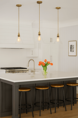Hang multiple pendants above your kitchen island to evenly light meal prep areas and create a warm gathering spot.