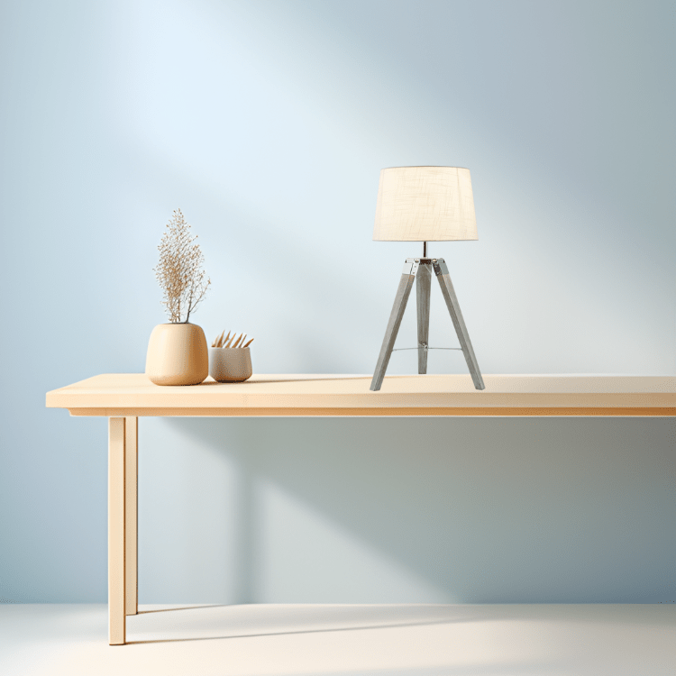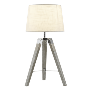 Introducing Arabella, a stunning and elegant wood and chrome table lamp. Its sleek tripod base artfully combines modern and classic design elements, perfect for any sophisticated space. This exclusive piece of lighting creates a luxurious atmosphere, sure to garner admiration in any room.