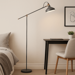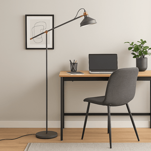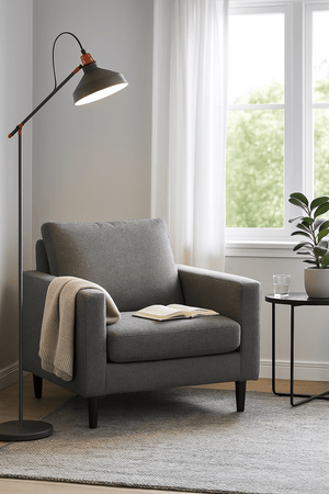 Create a warm reading corner by adjusting the lamp arms over your armchair for focused light and relaxing ambiance.