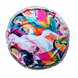 Experience paradise on the beach with our Round Beach Towel - Bird Paradise! Perfectly sized for lounging in the sun, this towel features a vibrant bird and floral design that will transport you to a tropical oasis. Made of soft and absorbent material for ultimate comfort. Get yours today and bring paradise with you to the beach!