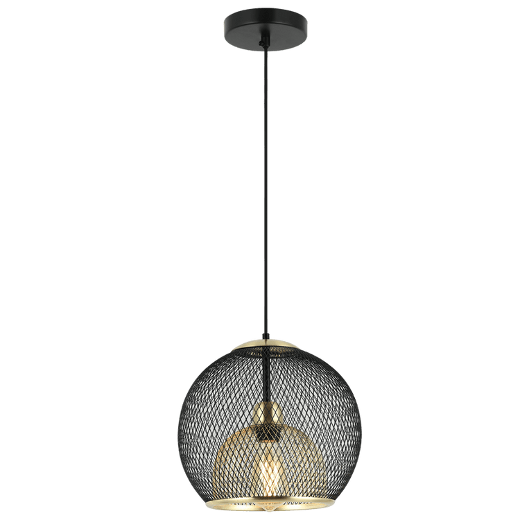 Brighten up any space with the Beau Black and Gold Pendant Light. Its sophisticated black and gold finish is accentuated by an overlaying mesh pattern, creating a chic and luxurious look. Perfect for adding an exclusive and artistic touch to any area.