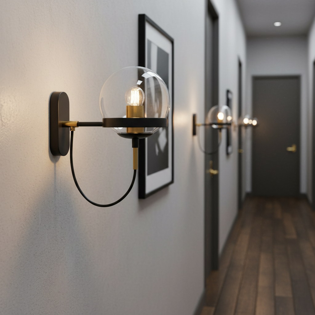 This striking metal wall bracket combines a bold black finish with warm gold detailing and a clear glass globe, creating a modern yet timeless statement. The exposed bulb design adds character, making it perfect for interiors that blend contemporary and industrial styles.