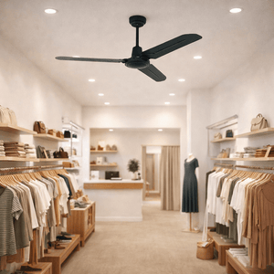 Keep your indoor space comfortably cool with this black industrial ceiling fan, built with three pressed-steel blades for smooth, reliable airflow. It’s a practical choice for a living room or open-plan area at home, and it also suits retail spaces where you want steady air movement with a clean, modern industrial look.