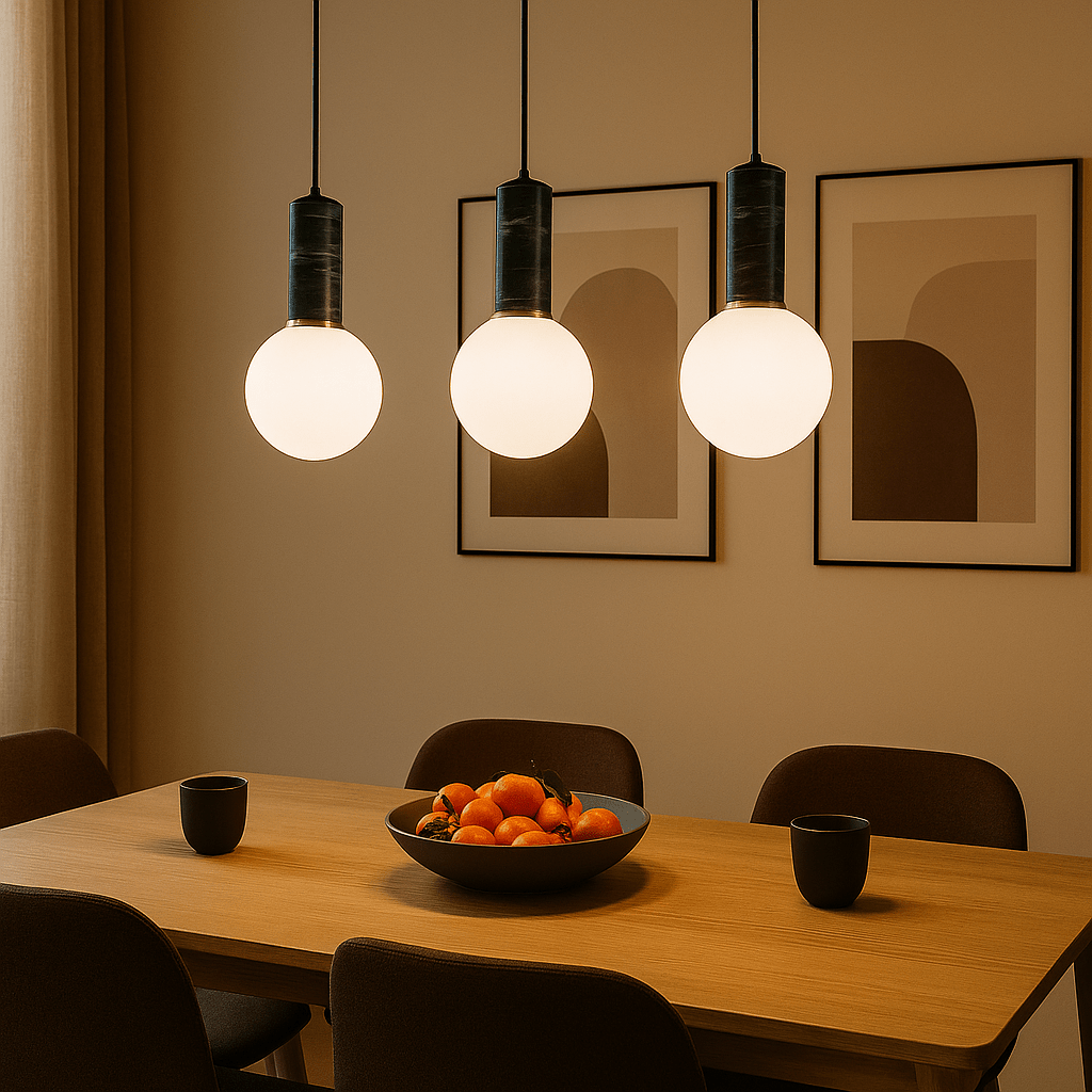 Styling Tip: Hang multiple pendant lights at varying heights over a dining table for a dramatic and visually pleasing effect.