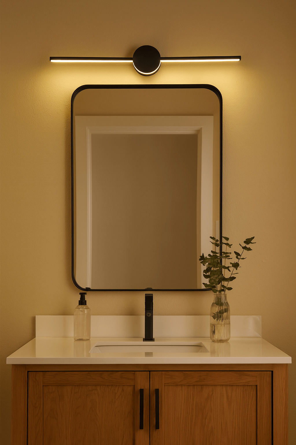 Yes! With its IP20 rating and sleek design, it’s ideal for indoor use over mirrors in bathrooms or dressing rooms.