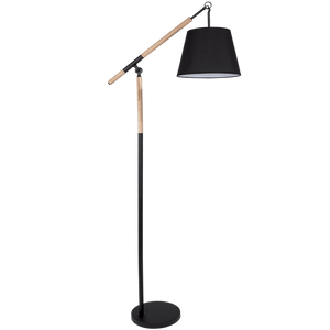 This black and wood floor lamp combines modern aesthetics with functional design, making it a perfect addition to living rooms and reading nooks. Featuring a sleek metal frame, natural wood accents, and a black fabric shade, it provides a warm and inviting glow while enhancing any décor. 2 Year Warranty!