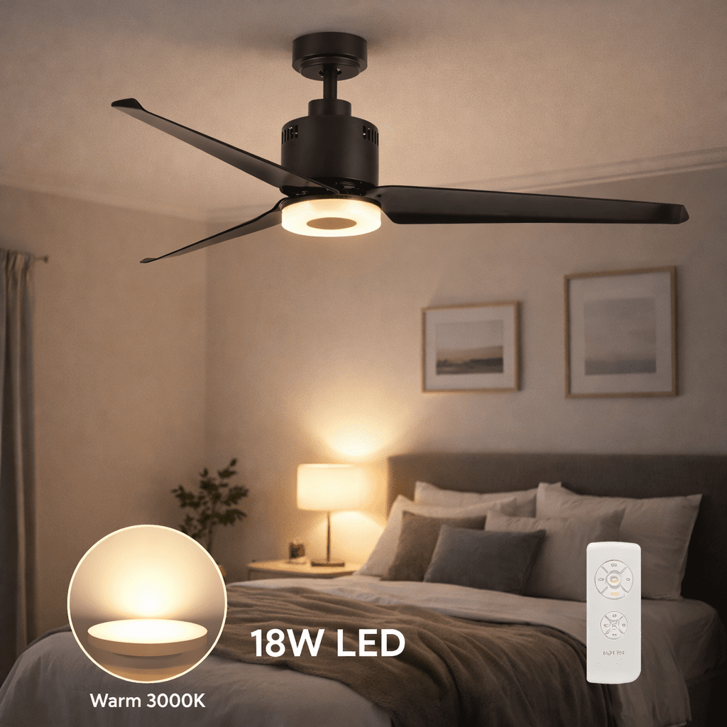 Quiet bedroom airflow: Maintain comfortable sleep with gentle airflow while the integrated 18W LED set to warm 3000K provides soft light for reading without harsh glare.