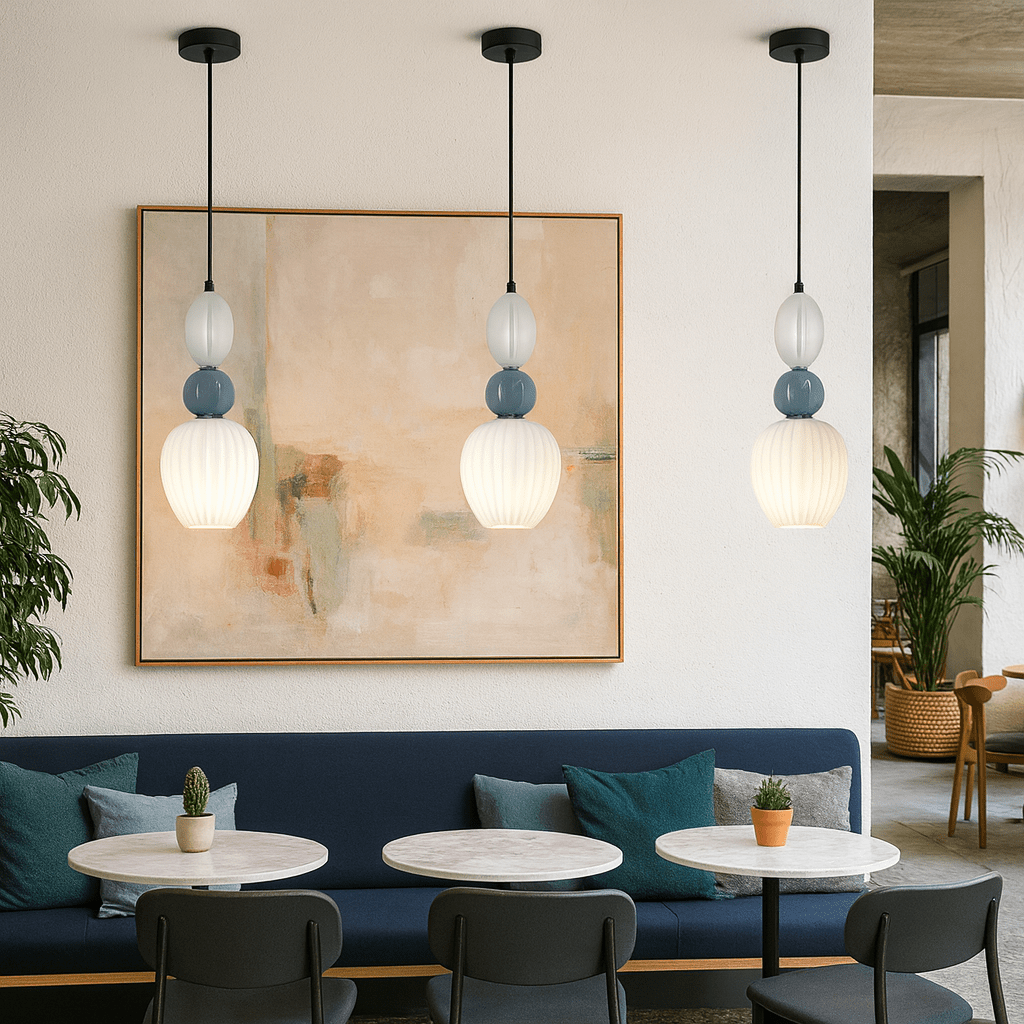 The Ceramic Opal Grey Pendant Light is a beautiful addition to any modern home, combining off-white and blue-grey ceramic with an opal white glass shade. Designed for indoor use, this light fixture provides a sophisticated lighting solution perfect for living rooms, dining areas, and kitchens. With its stylish appearance and compact dimensions, it caters to both aesthetic and functional needs, making it a must-have for contemporary interiors.