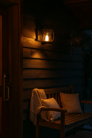 Compact porch seating accent: Install near a small patio bench to create ambient evening light for reading or relaxing, without overpowering the space.