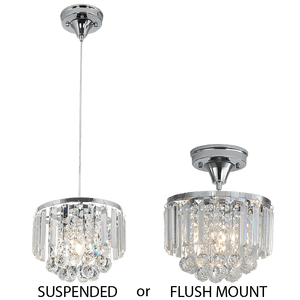The Chrome Pendant and Ceiling Light is designed for those who appreciate a blend of modern elegance and flexible functionality. Ideal for contemporary homes, its polished chrome finish and crystal details offer sophistication and style. This light can be mounted as a pendant or ceiling fixture, catering to varying aesthetic preferences and lighting needs.