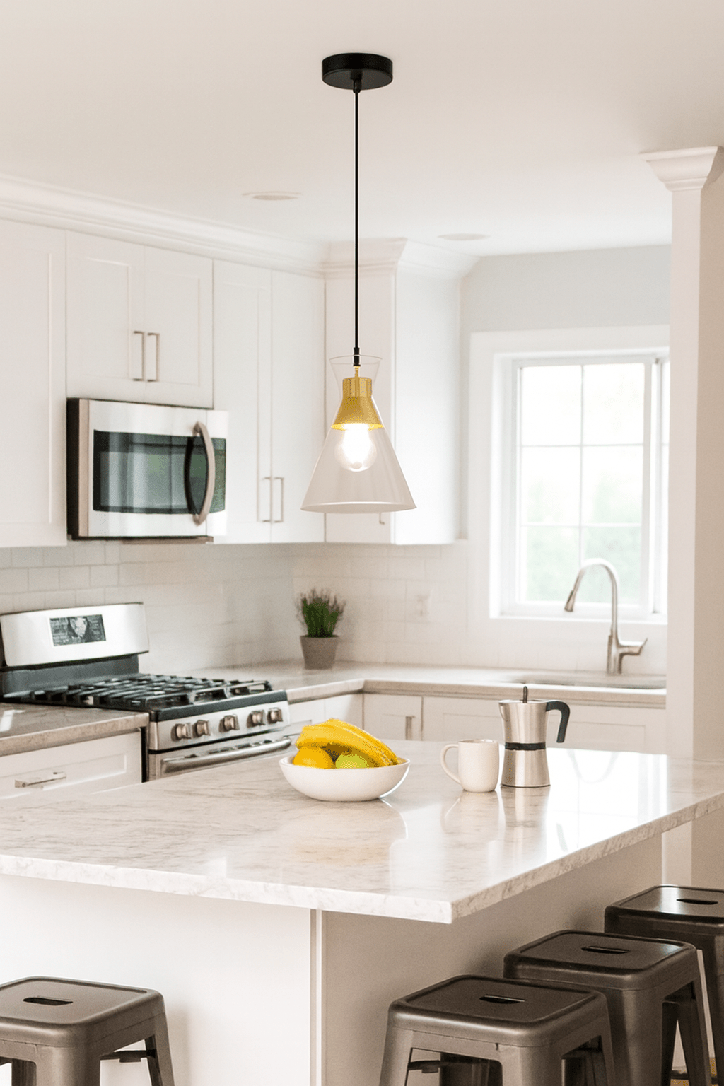 Install over a kitchen island to provide focused lighting for meal prep and casual breakfasts.