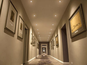 Brighten reception areas with adjustable 10W downlights, combining durability and modern crisp-white light in coastal corporate spaces.
