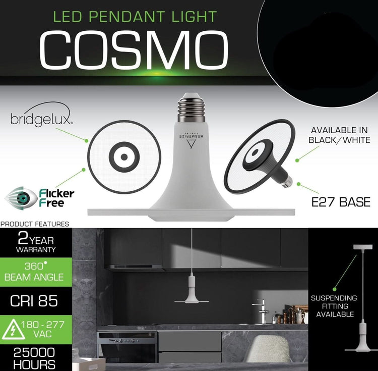When it comes to the COSMO LED Pendant Lamp, there is something for everyone. With its distinctive optical design, three-step switching (2W, 10W, and 12W), and 360-degree beam angle, this LED light provides the answer to a wide range of applications.