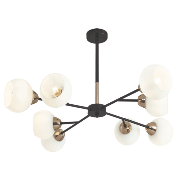 Dalia Black and Gold Chandelier - 8 Light - White Glass