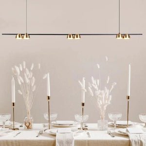 Make a bold statement with the Dallas 1500 Black Linear Pendant, featuring striking gold spot interiors that add warmth and depth to its modern silhouette. Crafted from premium aluminium, this 1.5m pendant houses six integrated LED light sources, delivering a warm 3000K glow with CRI 90 for exceptional colour accuracy. Fully dimmable, it offers both functionality and style for large dining, kitchen, or workspace settings.