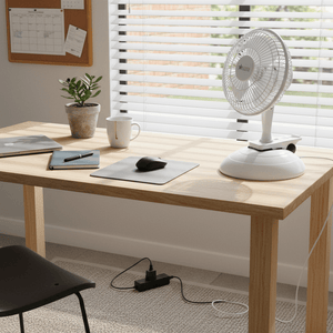 Perfect for a small home office or a bedside table, this fan gives a personal, focused breeze right where you sit. Its small footprint fits next to a laptop or on a nightstand without taking up space, and the adjustable head makes it easy to aim airflow across your workspace or sleeping area. It’s quiet in use, so it keeps you comfortable without interrupting concentration or rest.