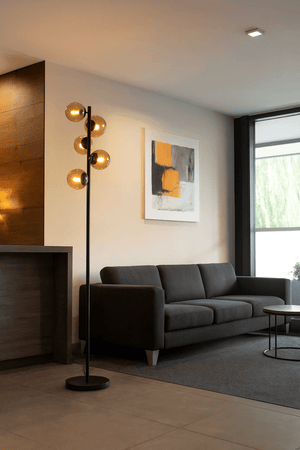Position the floor lamp behind a sofa to create warm ambient lighting for relaxed evenings and social gatherings.