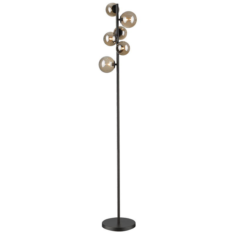 Create a warm atmosphere with this sleek Floor Lamp with Smoke Colour Glass. Its smokey lamp shades create a modern look that subtly adds sophistication to any room. This stylish lamp adds a fashionable touch without overwhelming the atmosphere. Enjoy peace of mind with a 2 Year Warranty!