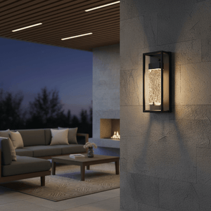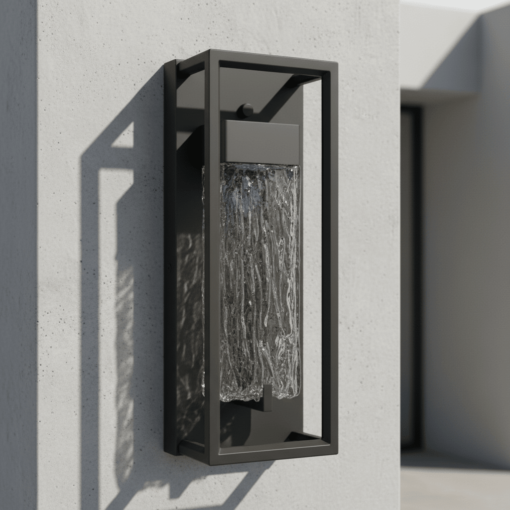 The Framed Ripple LED Wall Light is a striking architectural outdoor fitting designed to bring texture, depth, and modern elegance to exterior spaces. Featuring a bold black metal frame and a distinctive rippled glass diffuser, this light creates a captivating water-like glow that transforms patios, entrances, and garden walls into beautifully illuminated features.