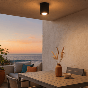 The Franca 90 Black Outdoor Ceiling Light LED merges style with functionality, crafted for those seeking durable, chic lighting for their outdoor areas. Made from UV-stabilized shockproof resin, this light serves homeowners who prioritize both aesthetics and endurance in outdoor settings. With its adaptable LED options and sleek black design, it's perfect for various outdoor atmospheres.