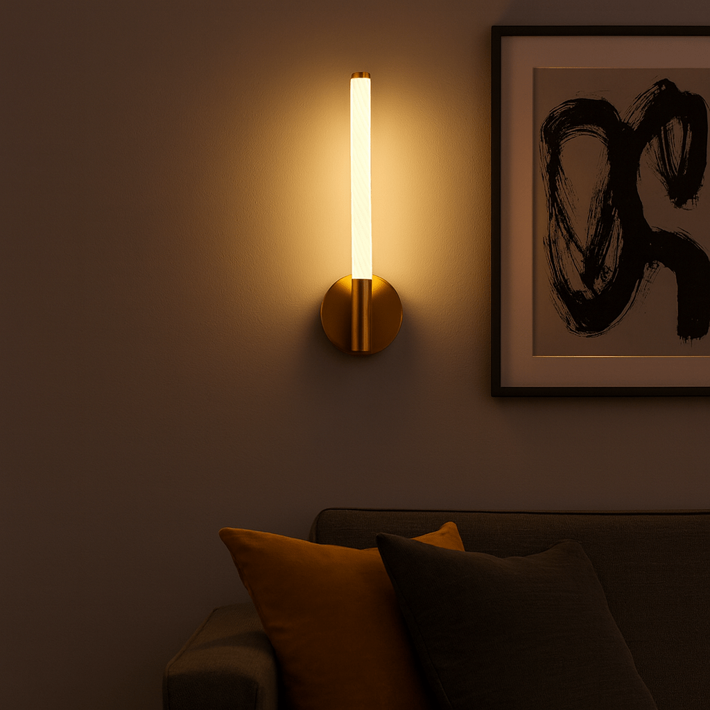 This elegant 8W Metal LED Wall Light brings a refined designer touch to any modern space. With its brushed gold accents and beautifully textured acrylic diffuser, it provides crisp, even illumination while doubling as a striking décor feature. Its slim vertical design makes it perfect for bedrooms, bathrooms, hallways, and luxury living areas.