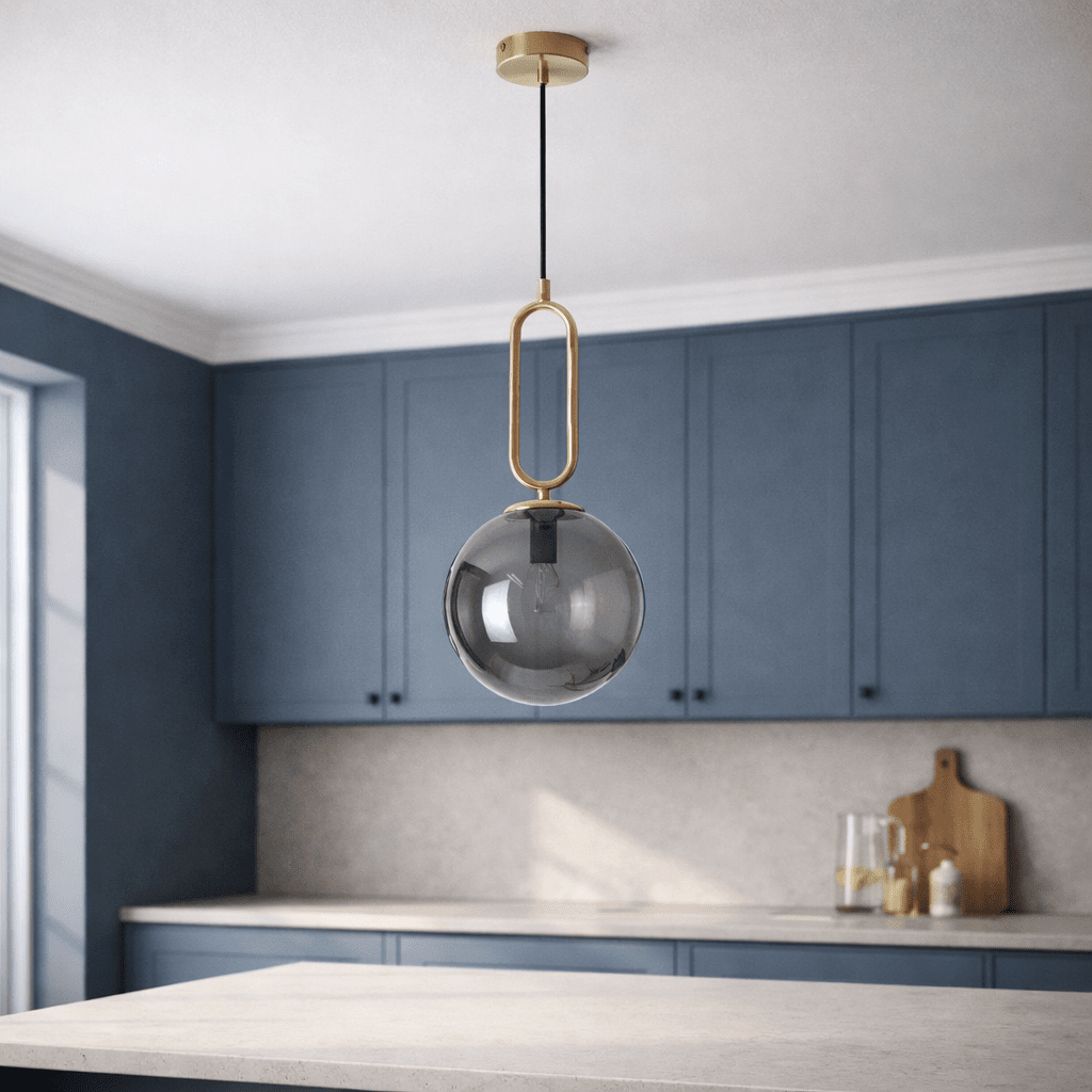 Over a compact dining table: Hang one centered 75–90 cm above the table for warm, even dining light, the smoke glass softening glare while the gold finish adds elegance.