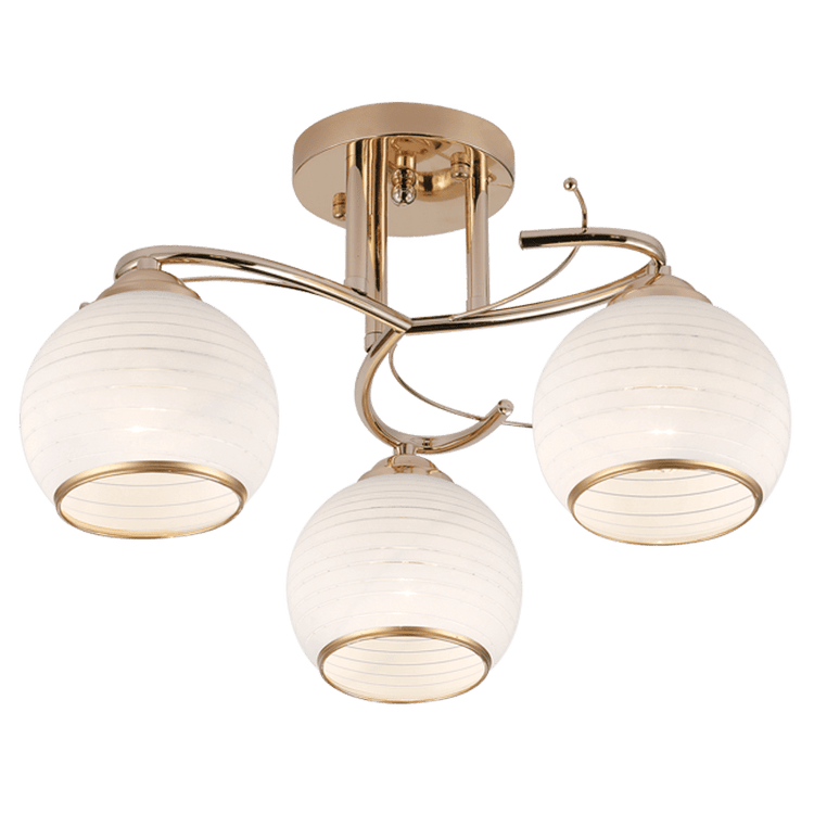 Elevate your interior spaces with the Gold Patterned Ceiling Fitting, a perfect blend of modern design and classic charm. This stunning metal fixture, adorned with patterned white glass, brings a touch of luxury and sophistication to any room.