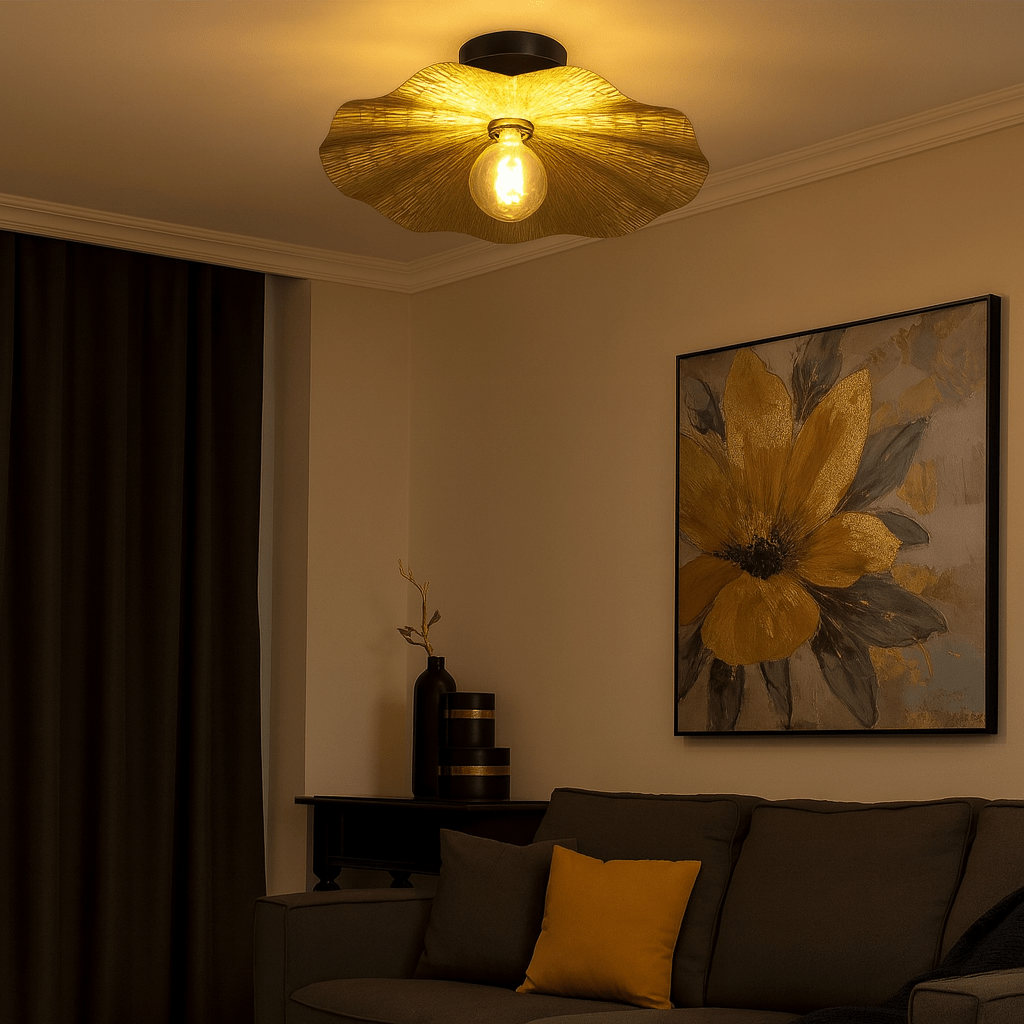 The Golden Flower Ceiling Fitting is compatible with 9W LED bulbs.