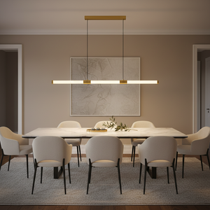 The integrated 36W LED produces a warm 3000K glow that provides comfortable ambient lighting while maintaining a sophisticated designer aesthetic. With its elongated 120cm profile and adjustable suspension height, this pendant offers both visual impact and balanced illumination across longer surfaces.
