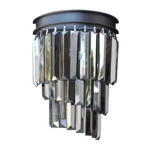 Light up your space with the Greta Black Crystal Wall Light. Its regal three-tier design, made with shimmering smoke crystals, adds a touch of palatial luxury to any setting. This gorgeous wall light is sure to be a show-stopper in your home, making it a sophisticated and elegant centerpiece that will shine for years to come.
