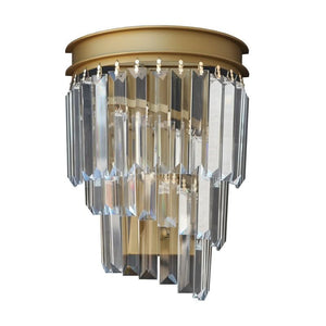 Light up your space with the Greta Satin Gold Crystal Wall Light. Its regal three-tier design, made with shimmering crystals, adds a touch of palatial luxury to any setting. This gorgeous wall light is sure to be a show-stopper in your home, making it a sophisticated and elegant centerpiece that will shine for years to come.